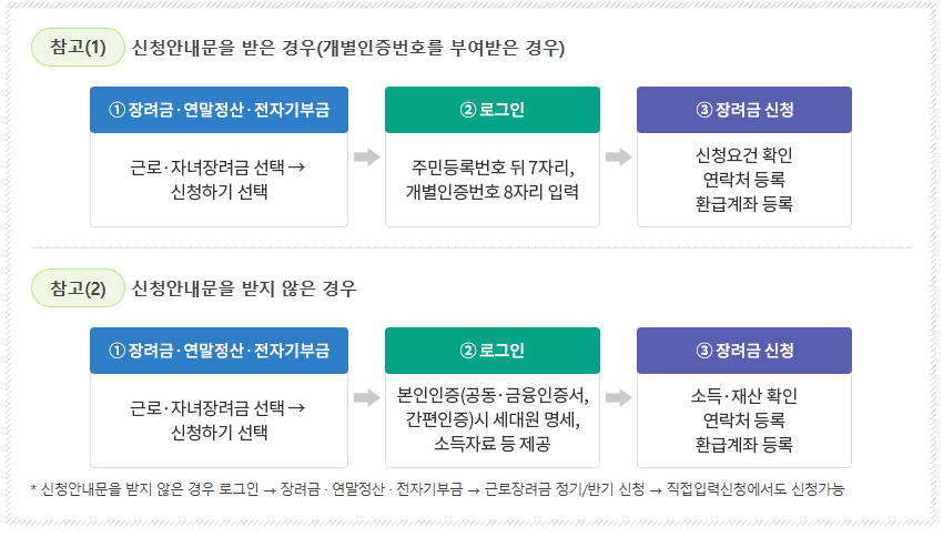 - 홈택스 접속 → 근로장려금 메뉴 선택