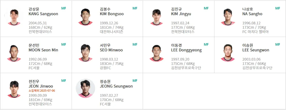 2025 동아시안컵 대한민국 대표팀 명단